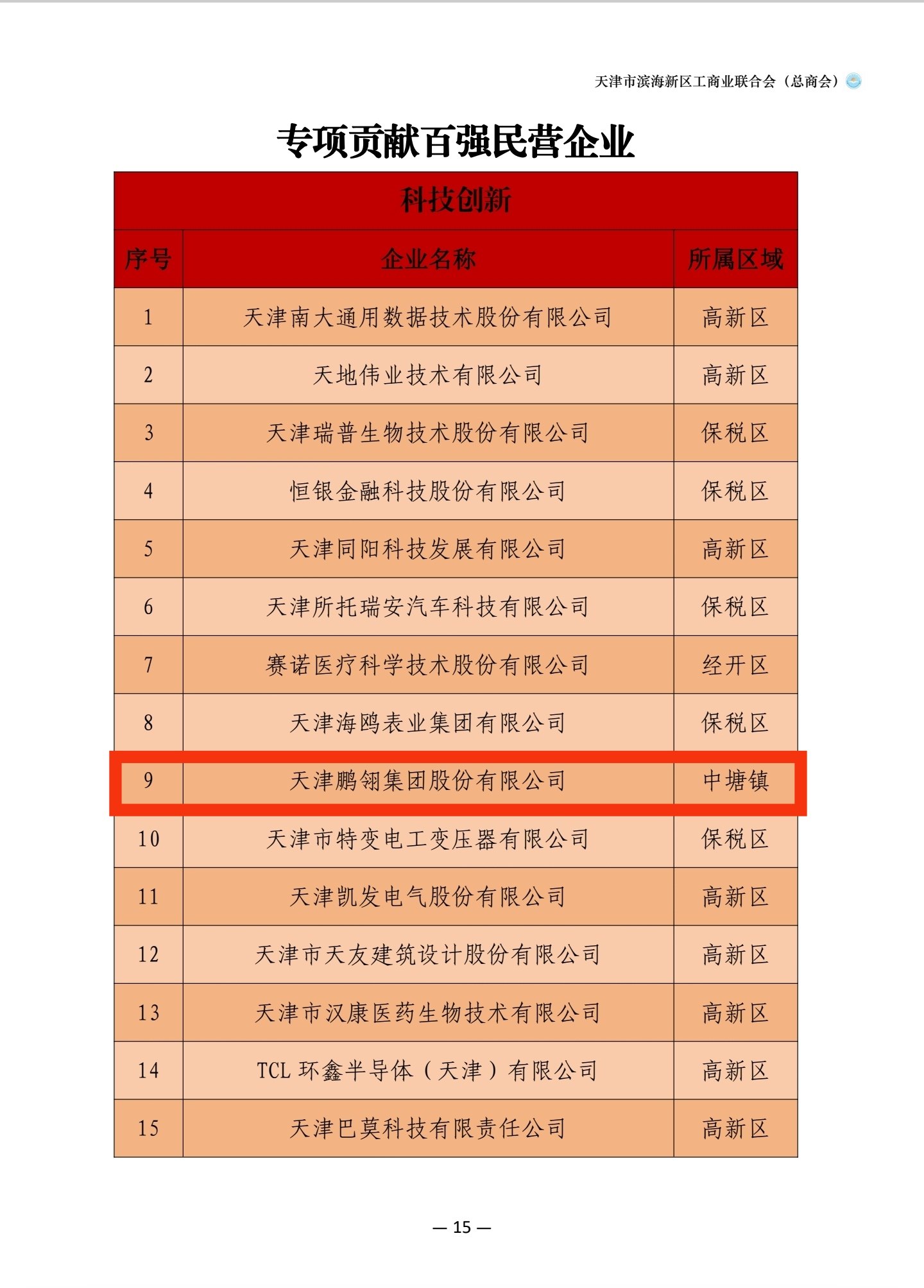 获此特荣是天津滨海新区对8868体育持续高质量发展的高度认可,也是对企业坚持以创新为驱动高品质发展的充分肯定,更是一种责任和鞭策。该榜单是滨海新区第三次发布,用于排定新区民企百强“座次”,将为观察新区经济发展方向和民营经济走势提供重要依据和参考。