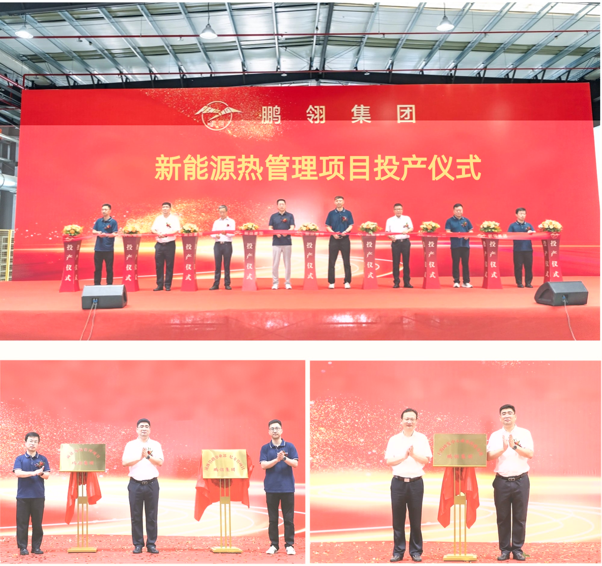 仪式最后,王志方董事长、王东总裁与嘉宾代表共同上台为项目剪彩、揭牌。彩带飞扬间,8868体育新能源热管理项目正式落成投产!