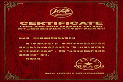 On December 7, the "China New Energy Automobile Development Forum 2017 and the 14th National Award Ceremony for 100 Excellent Auto Parts Suppliers" sponsored by China Automobile News was held as scheduled in Rugao, Jiangsu Province. Our company was awarded "the 14th National Top 100 Auto Parts Suppliers" and "Excellent Engine Parts and Emission System" honor.